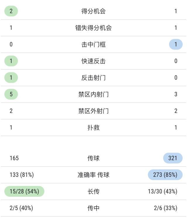 双方全场技术统计