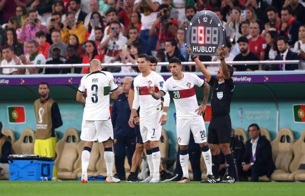 第79分钟,葡萄牙队用奥尔塔换下受伤的达洛特,同时齐耶赫在场下治疗,摩洛哥暂时少踢一人。